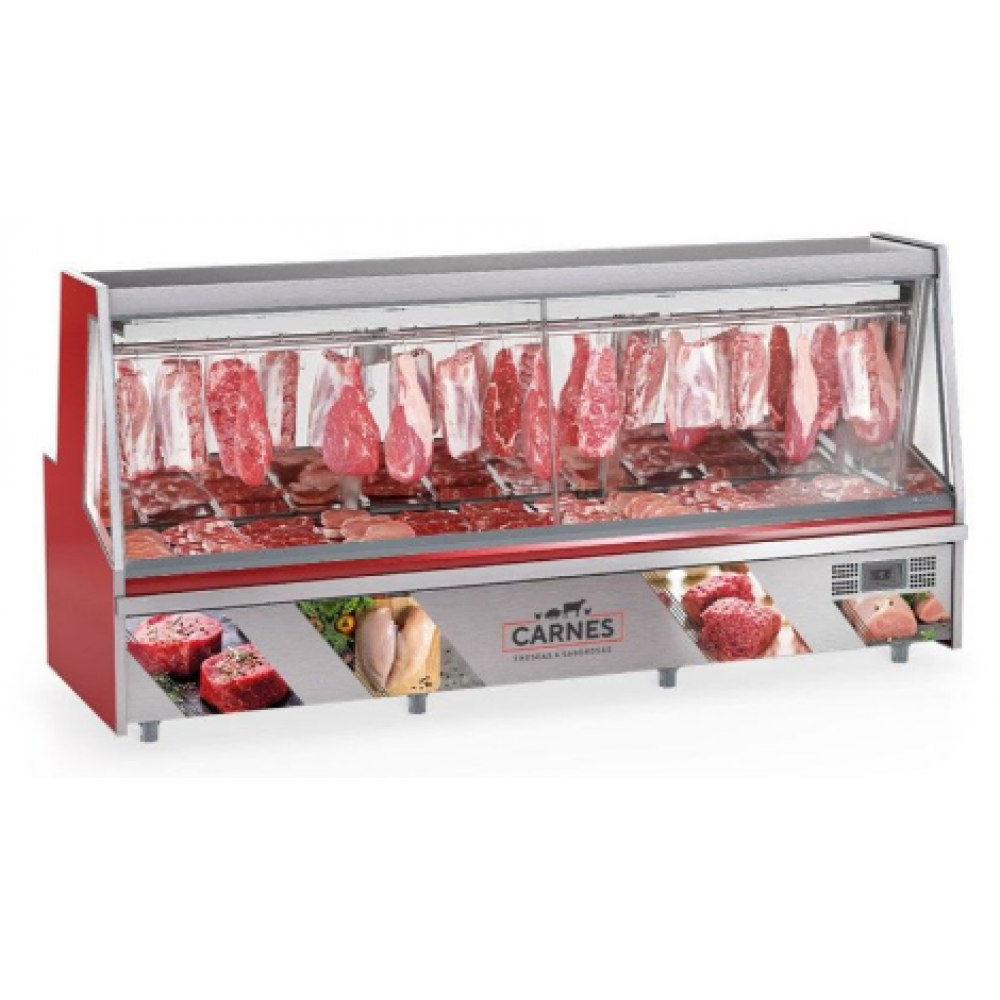 O Balcão Frigorífico Premium GATP-300D faz parte da linha Turino, desenvolvido para conservação e exposição de carnes (não congeladas). Refrigeração estática com evaporador aletado na parte superior e serpentina de cobre embutida na base. Temperatura 0 a +7C. Degelo manual. Controlador eletrônico de temperatura. Revestimento interno em aço inox 430. Revestimento externo com laterais em aço injetado, parte externa pré pintada (PR), parte interna aço inox espelhado. Iluminação LED interna com interruptor. Tendal duplo em alumínio com ganchos. Grades na base. Vidro sujeitos a condensação da umidade do ar. Vidro frontal temperado baixo emissivo. Capacidade tendal: 50kg/metro por tendal. Capacidade base / depósito: 50kg/metro. Equipamento certificado conforme Portaria Inmetro nº 371/2009