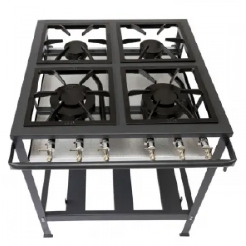 de 4 pontas. Queimadores simples em ferro fundido de 11 cm e queimadores duplo