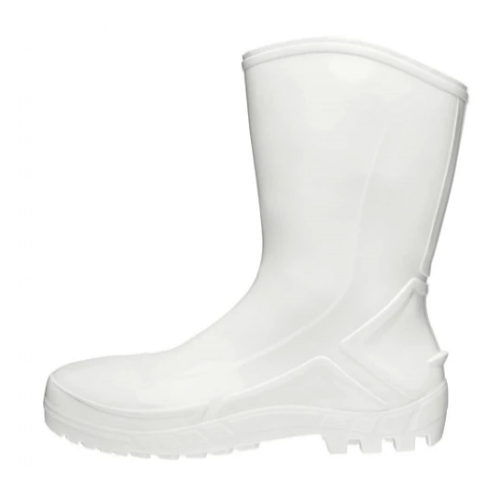 Bota de PVC (policloreto de polivinila) para profissionais de frigoríficos e abatedouros. Esse calçado é de fácil higienização, tem cano médio  com solado PVC full grip antiderrapante.