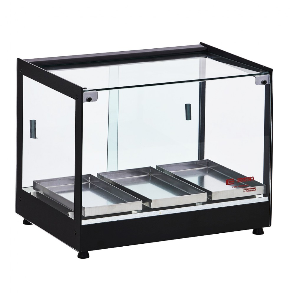 Estufa Para Salgados em vidro reto temperado com 3 Bandejas em aço inox. É um equipamento resistente produzido em aço escovado, sua estrutura não acumula sujeira de modo que os alimentos se mantem conservados durante mais tempo, acompanham as 3 bandejas e 1 umidificador capaz de evitar o ressecamento dos alimentos para que ficam crocantes e saborosos por mais tempo.