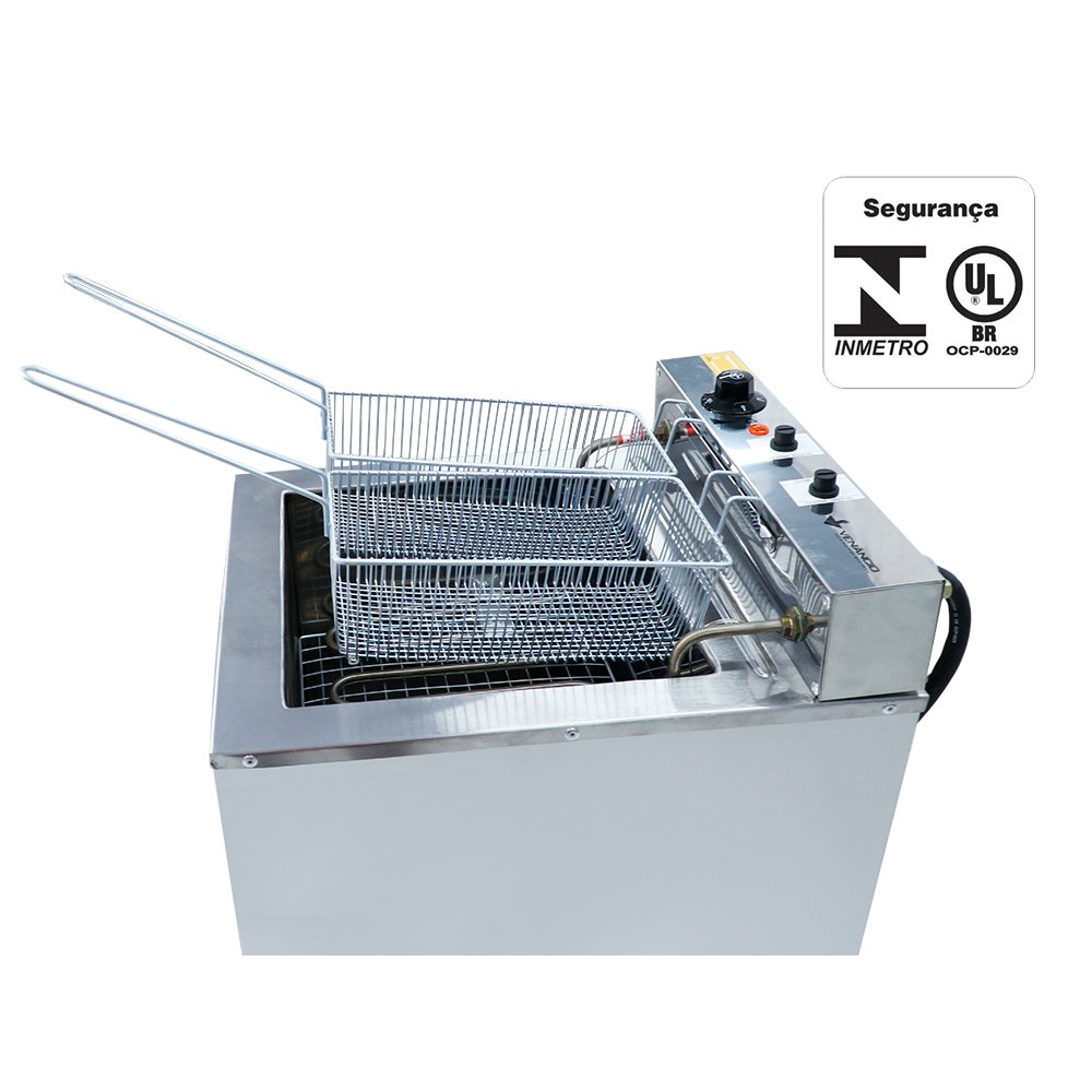 29 litros, sendo 5 litros de água e 24 litros de óleo, fabricada em aço inox