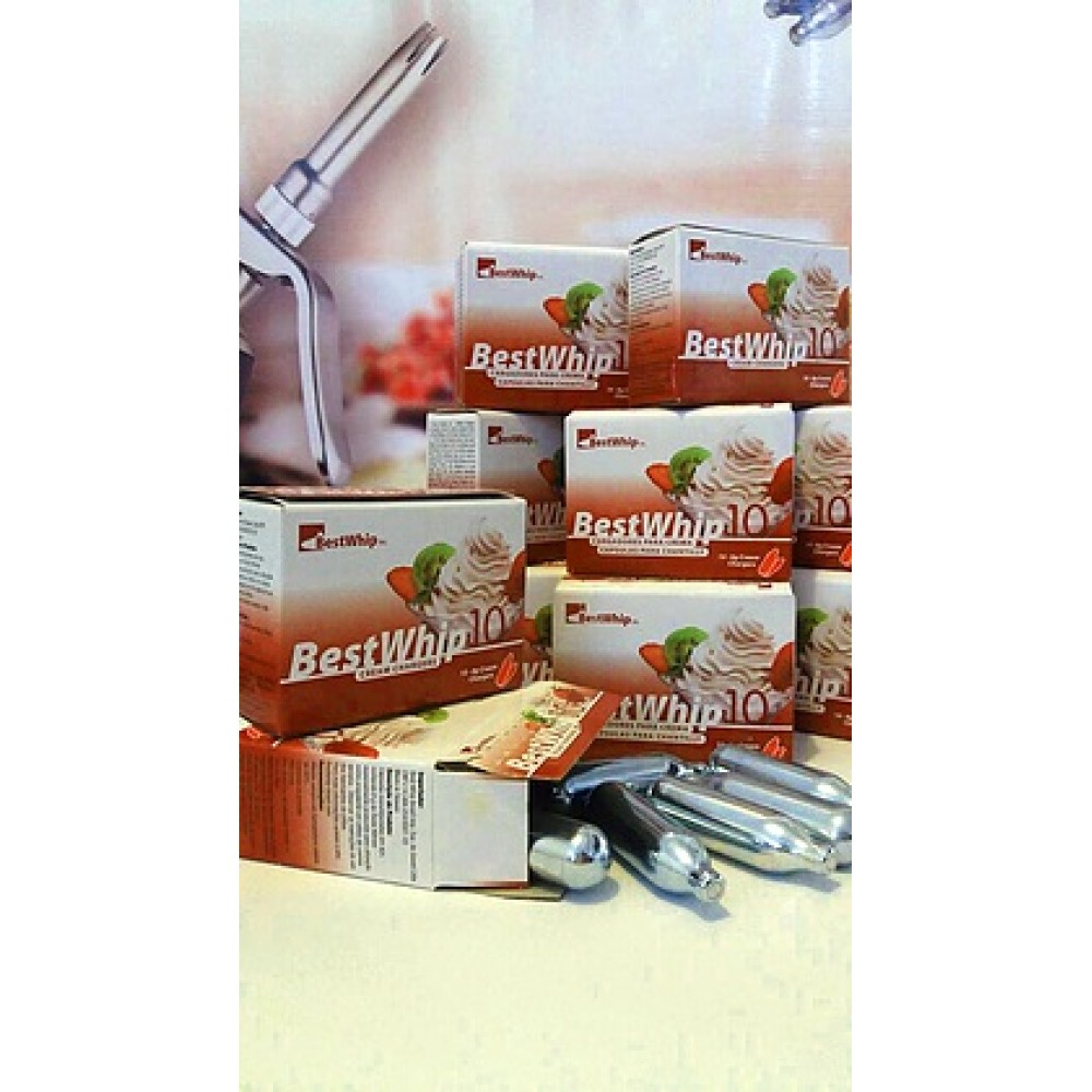 O gás para a garrafa de chantilly Bestwhip foi desenvolvido em aço revestido para a utilização em garrafas para chantilly, este conjunto é composto por 10 ampolas descartáveis com capacidade de preparo de até meio litro de chantilly (cada)
