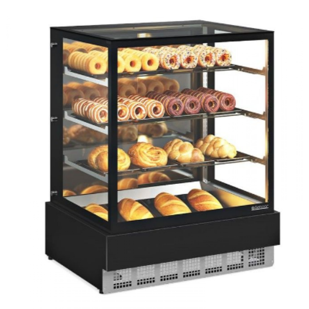 O Balcão vitrine Neutra MGEN-100 faz parte da linha Gourmet Elegance Conveniência, ela foi desenvolvida especialmente para exposição de produtos em condição ambiente. O revestimento externo com base acoplada em pré-pintado preto, com passagem de ar em aço revestido aço inox 304 escovado. Iluminação com LED perimetral com interruptor. Portas em aço deslizantes com corrediça (interno aço inox 430, externo aço pré-pintado). Prateleiras reguláveis em vidro temperado em 3 níveis. Pés niveladores e rodízios giratórios.
